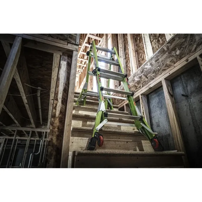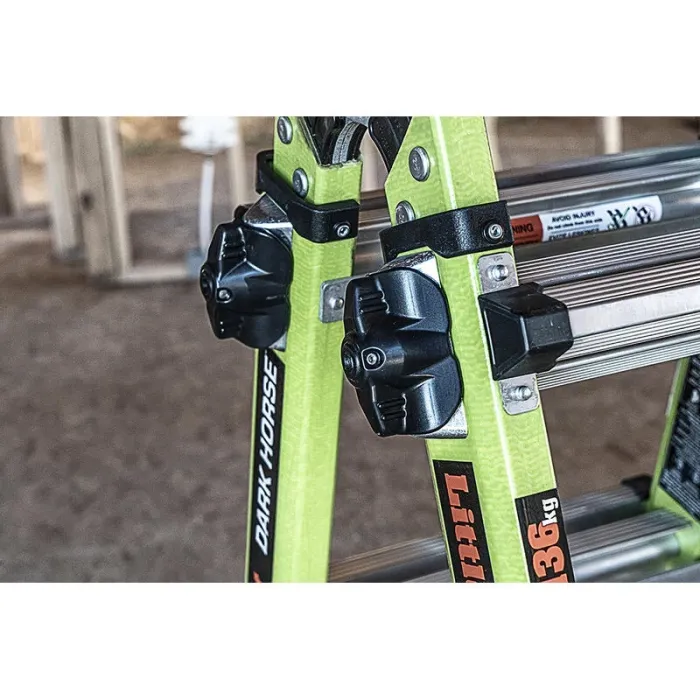 Тази стълба съчетава някои от най-добри функции в една мултифункционална стълба, която ще посрещне всички ваши нужди. Най-хубавото е, че с една стълба ще изпълните множество разнообразни по вид задачи. За стабилно и лесно изкачване настройте Dark Horse™ в нужната позиция: А-стълба, разпъната, напълно разпъната, 90 -градуса, позиция за стълбище и скеле.