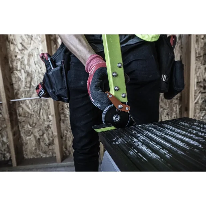 Дръжте инструментите си под ръка. Вградената тава за инструменти на парапета ви позволява да поставите телефона, чука, бормашината или други материали върху тавата за лесен достъп по време на работа. Jumbo Step има въртящ се предпазен парапет за допълнителна стабилност. Тази функция помага на потребителите на стъпала да се чувстват по-сигурни и уверени, докато работят на височина. С ултрашироките стъпала на Jumbo Step се усеща като изкачване по стълбище, а не по стълба. Изработена е от лек алуминий, подходящ за самолети, а стъпалата ѝ са с безопасна, нехлъзгава повърхност.