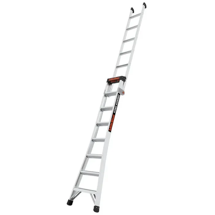 King Kombo е накланяща се стълба, съответстваща на OSHA/ANSI. Накланяйте стълбата си безопасно, за да можете да се приближите до работното си място.