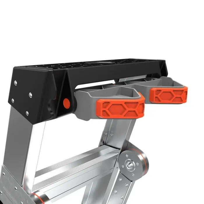 С функционалната задна секция в разгънато положение, можете лесно да достигнете до тези високи места, дори до отворите за достъп на покрива и тавана. Тази стълба е с широка разширена основа за стабилно катерене и тясна задна страна, която се побира между греди.