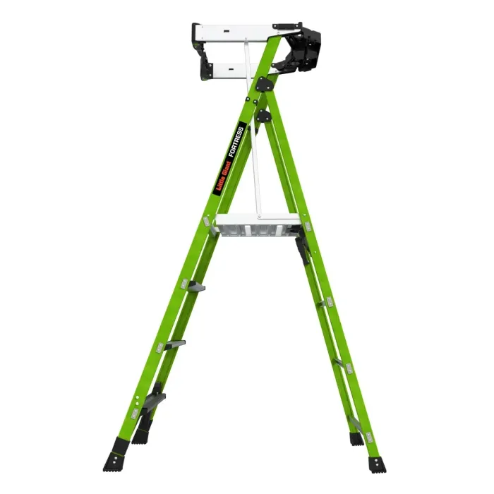 Комбинира предимствата на платформана стълба с леката и бърза и лесна за монтаж стълба. Най-новият иновативен продукт от Little Giant Ladders, проектиран да повиши безопасността и ефективността при работа с стъпала. Fortress разполага с голяма платформа за стоене, обгръщащо заграждение и автоматично затваряща се порта.