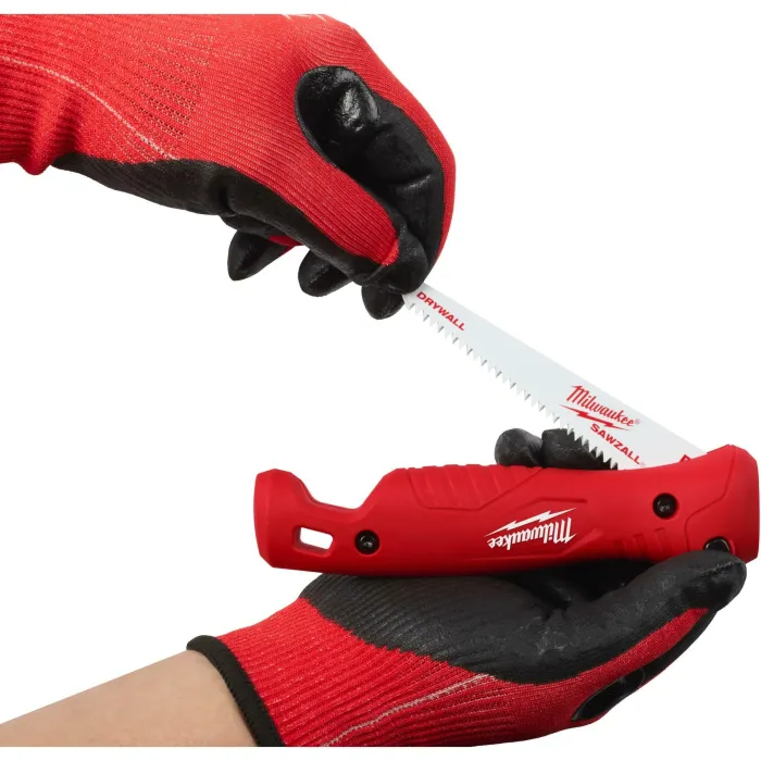Сгъваемия нож за гипсокартон е практичен и надежден инструмент, идеален за различни приложения. Оборудван е със сгъваемо острие, което осигурява лесно и безопасно съхранение, когато ножът не се използва. Смяната на острието е изключително удобна и не изисква използването на допълнителни инструменти. Ножът е съвместим с всички остриета SAWZALL 150 мм за ножовки, което го прави още по-гъвкав и полезен за различни задачи. Сгъваемия нож е с двуматериална дръжка, която е проектирана за комфорт и стабилен захват, дори при продължителна работа. Острието е с дължина 150 мм и разполага с 8 зъба на инч, което гарантира ефективно и прецизно рязане.