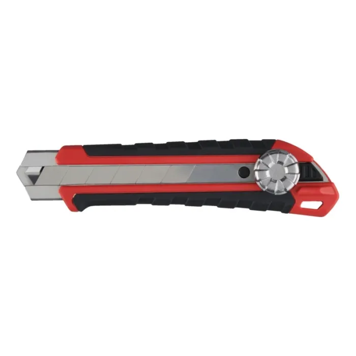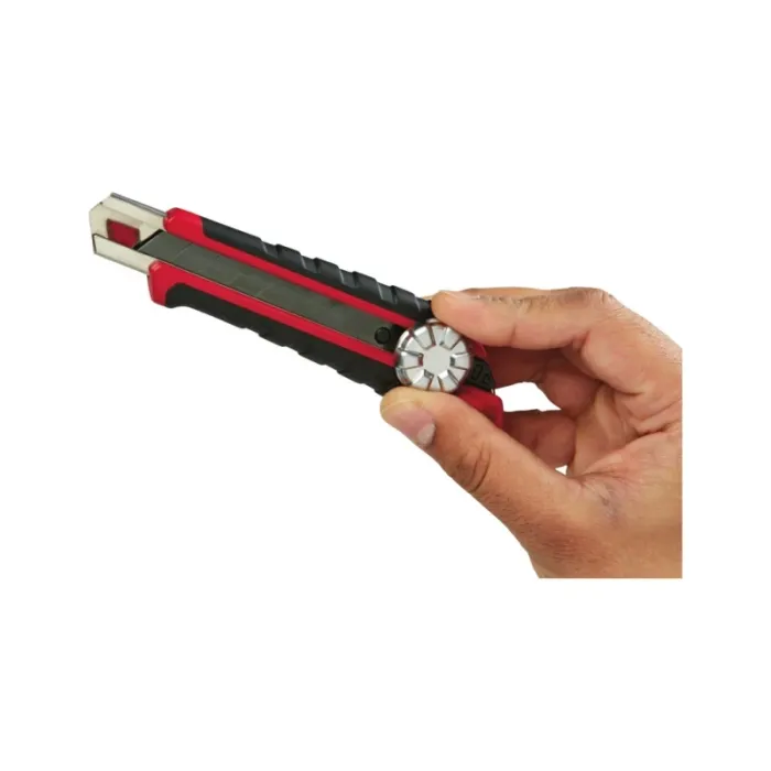 Меки повърхности за захващане за сигурно задържане. Висококачествено микрокарбидно острие за прецизни разрези и по-голяма издръжливост. Този нож за рязане е снабден с 7-точково, микрокорбидно острие, което ще издържи до 2 пъти по-дълго и е до 50% по-остро. Макетен нож с метално заключващо се колело за бързо и сигурно заключване. Заключващото колело с бързо освобождаваща се резба позволява по-бързо заключване на острието.