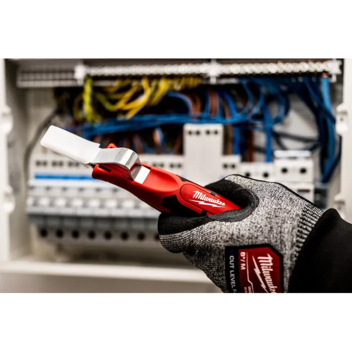 Регулиращо колело за регулиране на оптималната дълбочина на рязане. Автоматично превключване от кръгло към надлъжно рязане. Вградено кукообразно острие за многостранно приложение. Предпазната капачка на острието намалява риска от нараняване. Двукомпонентна конструкция на дръжката за удобна работа и повишена устойчивост на хлъзгане. Ножа е с голям капацитет за оголване на всички стандартни кръгли кабели с диаметър от 4 мм до 28 мм.