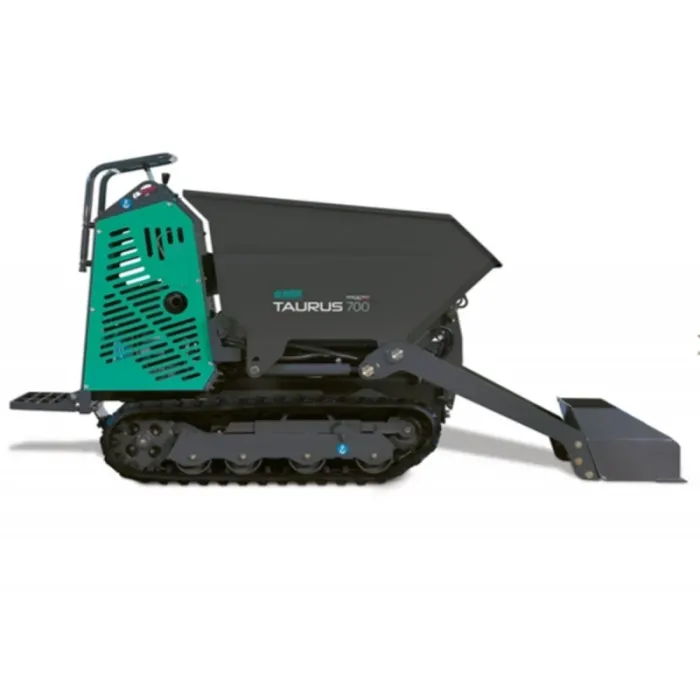 Двойната скорост на прехвърляне гарантира максимална работоспособност дори на големи строителни площадки. Ниското ниво на шум повишава комфорта на оператора и позволява употреба в градски центрове. Базов модул, оборудван със самотовареща се кофа и двойни вилични рамена. Лагерите на веригите са запечатани за допълнителна защита от замърсяване. Мини дъмперът е идеалното решение за транспортиране и обработка на различни видове материали на строителни площадки и на труднодостъпни места. Може лесно да се движи по всякакъв вид терен, включително трудни склонове, стълби и рампи. Здрави задвижващи колела за по-дълъг експлоатационен живот. STCS самонатягаща се релсова система. Стоманени втулки с гресьорки в точките на въртене. Сваляем капак за по-добър достъп, проверки, поддръжка и зареждане с гориво. Съчленена изпускателна тръба с наземно изпускане. Самозареждащата се кофа позволява бързо товарене на материали, безопасно и без никакви усилия за оператора. Електрически старт