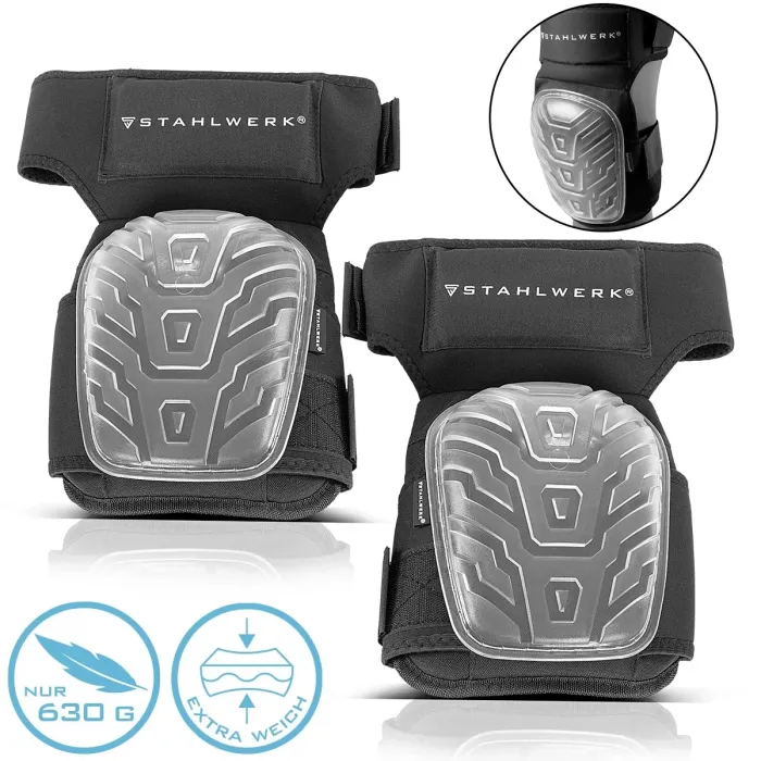 Благодарение на висококачествената изработка и противоплъзгащия контактен профил, наколенките винаги осигуряват сигурно захващане върху всички повърхности. Меката пяна, еластичните ленти и издръжливата полиестерна материя на здравите наколенки гарантират високо ниво на комфорт. Велкро закопчалките позволяват лесното регулиране и адаптиране на наколенките към потребителя. Освен това те се поставят и свалят бързо. Професионалните наколенки от STAHLWERK предлагат максимална защита и предпазват коленете в дългосрочен план при работа близо до земята. Тези практични наколенки предлагат на професионалистите надеждна защита при дейности на коленичене, като например полагане на плочки, полагане на под или градинарство. Наколенките са изключително еластични, стабилни по размер и устойчиви на износване.