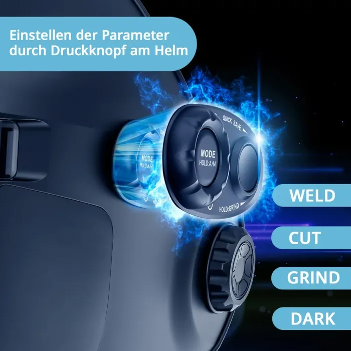 Желаните параметри (ЗАВАРЯВАНЕ / РЯЗАНЕ / ШЛИФОВАНЕ / ТЪМЕН РЕЖИМ) могат да бъдат удобно избрани само с една ръка с помощта на бутон, без да е необходимо да сваляте заваръчната маска.