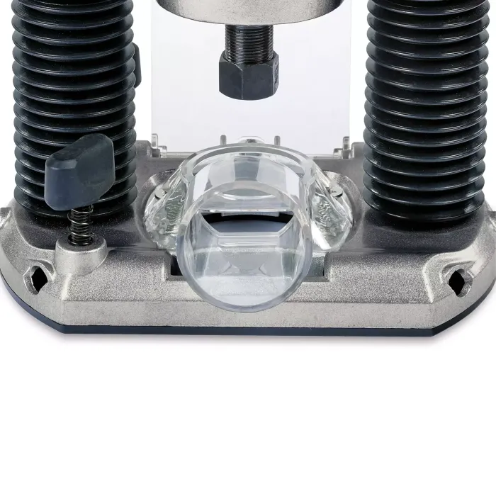 Дълбочината на фрезоване може бързо да се избере предварително чрез многопозиционен ограничител на револверната глава и след това да се настрои прецизно с помощта на фин регулатор. Предпазител от стружки осигурява допълнителна безопасност по време на работа. Благодарение на електрониката за контрол на скоростта, производителността на фрезоване може да се адаптира оптимално към изискванията на материала и фрезовата глава. Комплектът за фрезоване е удобен, но мощен инструмент с мощност 1100 W, който е незаменим помощник за амбициозните „направи си сам“ майстори в различни проекти за фрезоване. Заключването на шпиндела позволява бърза и лесна смяна на инструментите, а балансираният дизайн гарантира сигурно задържане на инструмента.