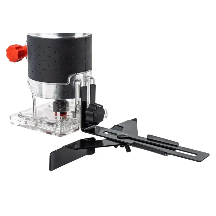 Гумираните повърхности за захващане осигуряват здрав и удобен захват, дори при продължителна употреба. Фрезовата машина е оборудвана и с неплъзгаща се дръжка за повишен контрол и прецизност.