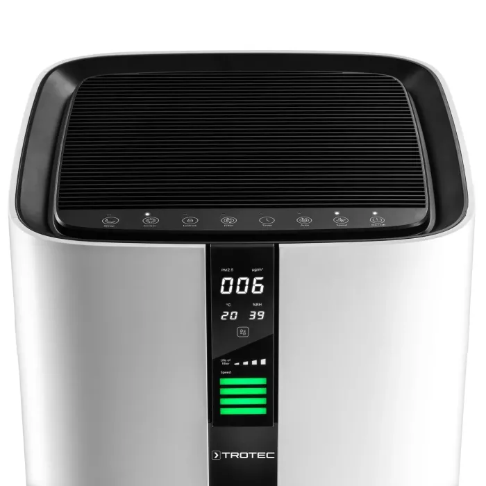 Вируси, бактерии, полени, алергени, фини прахови частици и спори на мухъл с размер до 0,3 микрометра се елиминират в двата HEPA филтъра. Благодарение на високата степен на отделяне от 99,97%, филтрите от този клас се използват например в хигиенно чувствителни лабораторни зони и в производството на храни. Най-добрите предпоставки за превръщането на вашите собствени четири стени в оазис на благополучие с чист, филтриран и свеж въздух в помещението.