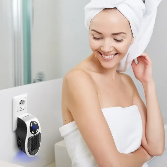 Моделът TFC 1 E впечатлява с модерен бял капак с атрактивен дизайн. Устройството осигурява бързо приятна топлина в малка стая с отоплителна мощност от 500 вата и две степени на вентилация. Първата степен на вентилатора е за нормална работа, втората се използва за бързо нагряване, за да разпредели топлия въздух бързо в стаята. Ефективният мини нагревател може да генерира топлина, където ви е необходима, за минути - без да се налага да отоплявате цялата къща или апартамент. Независимо дали е в банята, кухнята, на дивана, в детската стая или кабинета, вентилаторният нагревател с контакт TFC 1 E превръща неудобните студени места в уютни оазиси на благополучие.