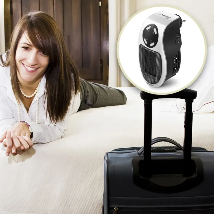 С малко по-големия от шепата и изключително лек контактен нагревател TFC 1 E, винаги има уютен източник на топлина у дома, както и по време на пътуване. С такъв мобилен керамичен вентилаторен нагревател в куфара, студените крака са нещо от миналото, дори по време на зимни почивки в Алпите. А тъй като мини вентилаторният нагревател се включва директно в контакта, той почти не заема място по време на работа и спестява досадното инсталиране на кабели.