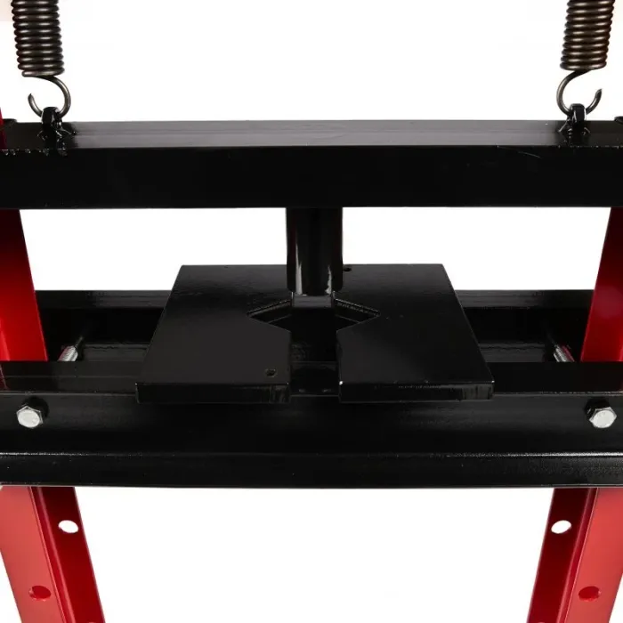 Това устройство е базирано на доказан дизайн, който, съчетан с най-висококачествени материали, прави работата лесна, бърза и безопасна. Налягането от 12 тона се постига чрез ръчно напомпване на лоста, а буталото се освобождава автоматично чрез развиване на клапана на задвижващия механизъм. Хидравличната преса с 12-тонен цилиндър и здрава конструкция, изработена от конструкционна стомана, тя може да се справи дори с най-взискателните задачи в работилницата.