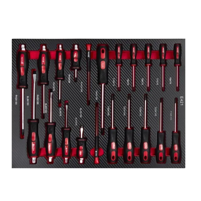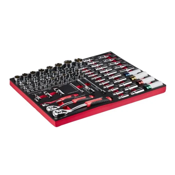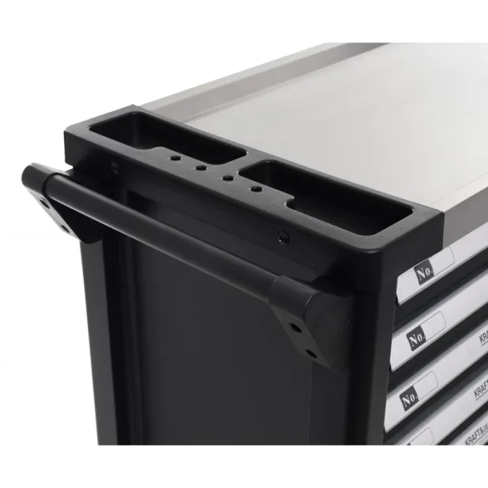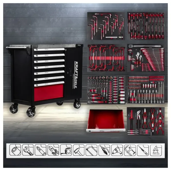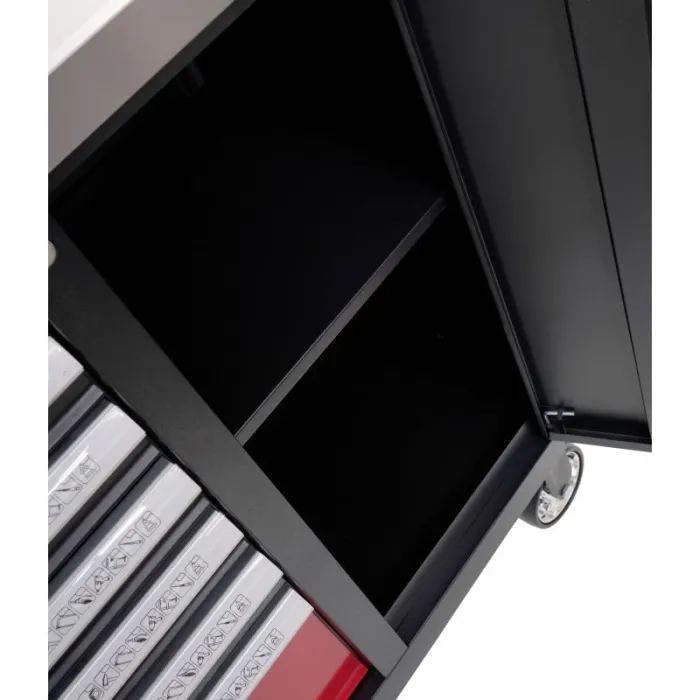 Всяко чекмедже е монтирано върху лагерни водачи, което прави отварянето им плавно, тихо и издръжливо. Всички ключове са изработени от CrV (хром-ванадиева) стомана. Шкафът е оборудван с пълен комплект инструменти, състоящ се от 299 части. Шкафът е оборудван с гумени брони, за да се предотврати повреда на каросерията на автомобила в случай на случаен удар. Всяко чекмедже е защитено срещу случайно отваряне и се заключва с ключ.