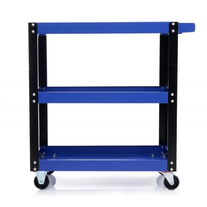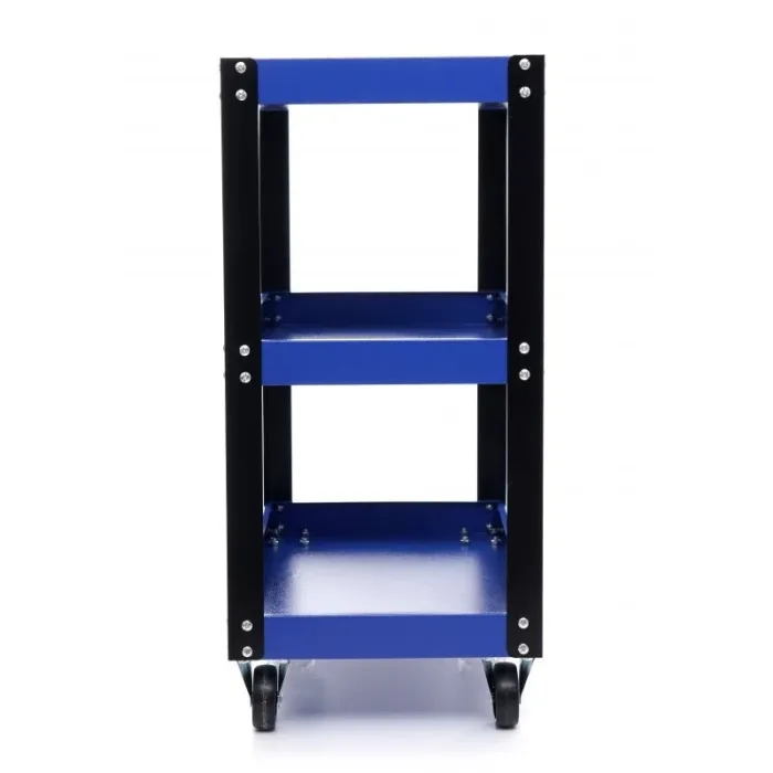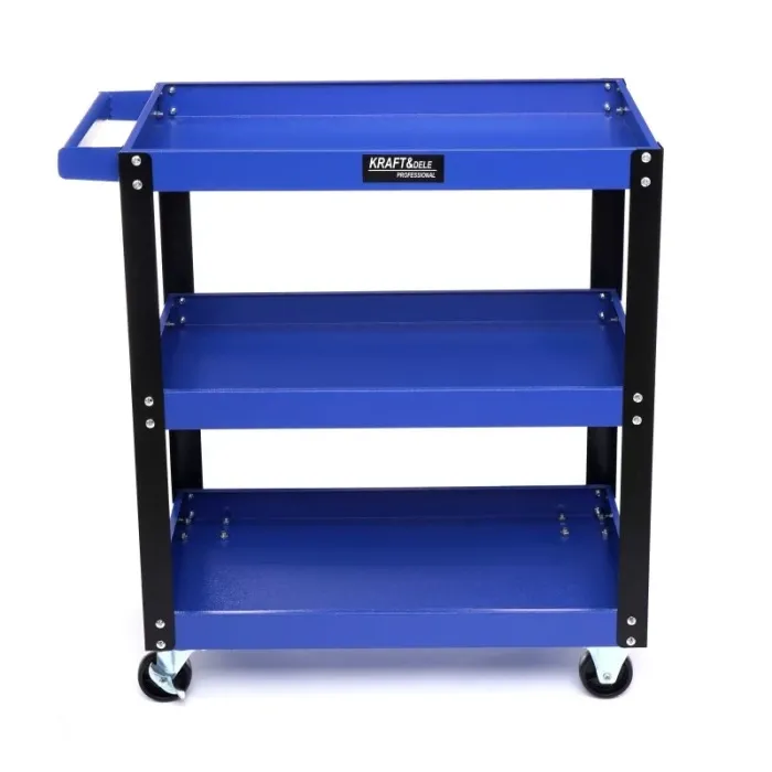 Количката има три рафта с дълбочина 4,5 см! Здрава и издръжлива конструкция, изработена от най-висококачествена стомана. Разполага с четири колела, две от които са въртящи се. По-големите колела отзад и по-малките отпред улесняват маневрирането дори с тежък товар. Професионалната количка за работилница е идеалното решение за съхранение на инструменти и транспортиране на малки предмети. Тя е идеална за работилници, сервизни центрове и домашни гаражи.