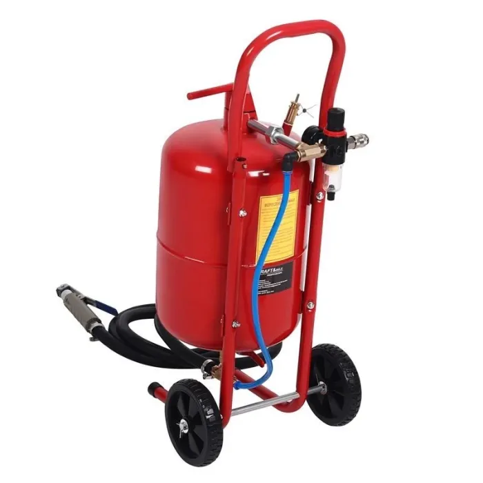 Пясъкоструйката е с капацитет 19 литра е изработен от издръжливи материали, устойчиви на абразиви и работилнически условия. Ергономичният му дизайн позволява комфортна работа дори при продължителна употреба.