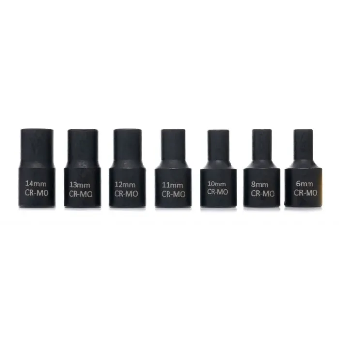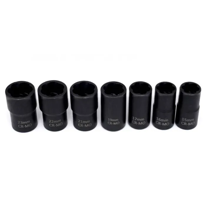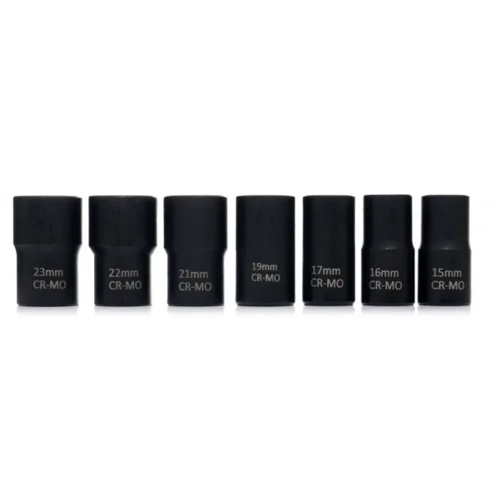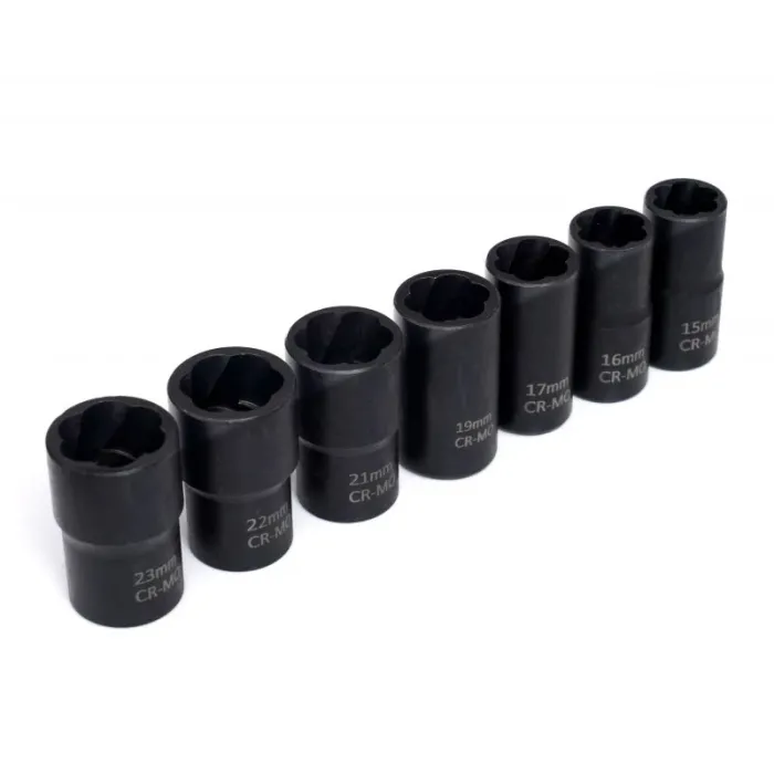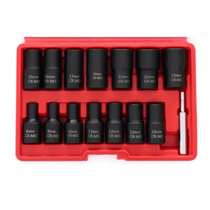14 x вложки с размери: 23 мм, 22 мм, 21 мм, 19 мм, 17 мм, 16 мм, 15 мм, 14 мм, 13 мм, 12 мм, 11 мм, 10 мм, 8 мм, 6 мм