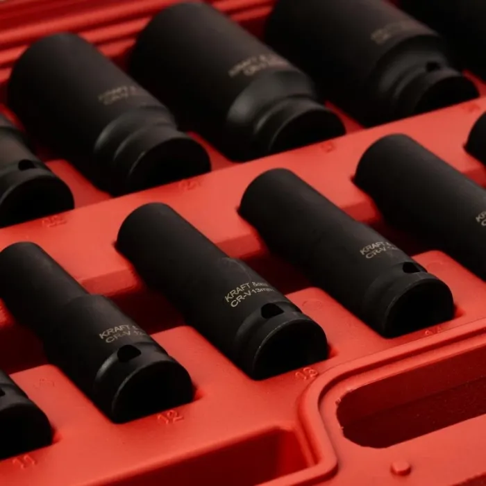 Препоръчва се за професионални гуми и автомобилни услуги. Изработена от специална хром-молибденова стомана, която има два пъти по-голяма якост на опън от обикновената въглеродна стомана и три пъти по-голяма граница на провлачване. Професионален комплект ударни вложки предназначен за употреба с пневматични устройства, които работят в много трудни условия при променливи натоварвания.