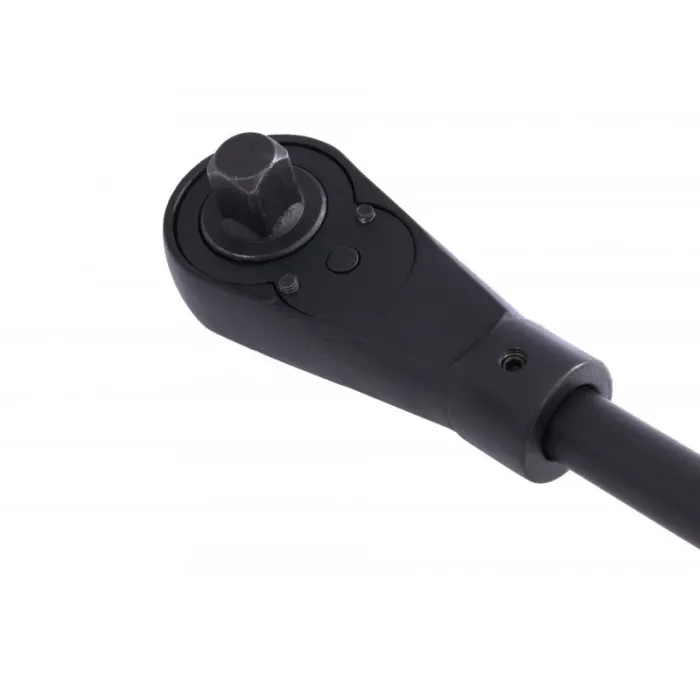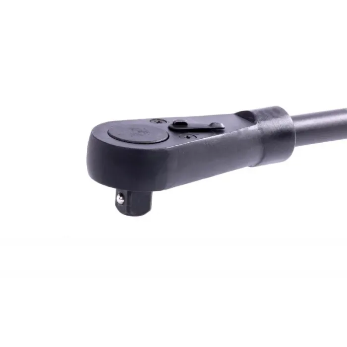 Изработена е от висококачествена стомана, което гарантира дългогодишна употреба. Назъбената дръжка предотвратява подхлъзване и осигурява безопасна работа. Професионалната ударна тресчотка ще отговори на вашите очаквания дори при най-суровите условия на работа. Тя позволява използването на удобни удължители.