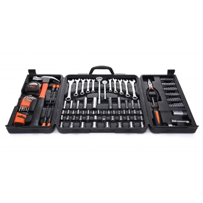 Препоръчваме този продукт на всеки, който цени високото качество и добрата цена. Незаменим във всички професионални автосервизи, сервизи и производствени компании. Изработена от хром-ванадиева стомана (CrV) - специален вид стомана, използвана за производство на инструменти. При този вид стомана, закаляемостта ѝ се увеличава чрез използването на хром и ванадий като легиращи добавки. Комплект за професионалисти, които отказват да правят компромиси. Инструменти, които правят работата по-бърза, по-безопасна и по-комфортна. До 140 предмета, поставени в куфар. С всички ваши инструменти на едно място, намирането на този, от който най-много се нуждаете, отнема само миг. Хромът гарантира устойчивост на стоманата на корозия, окисляване, абразия и висока якост при високи температури. Добавянето на ванадий инхибира растежа на зърната по време на термична обработка, като същевременно увеличава пластичността както в закалените, така и в темперираните форми.