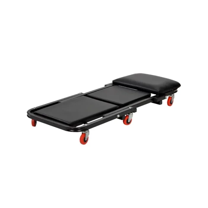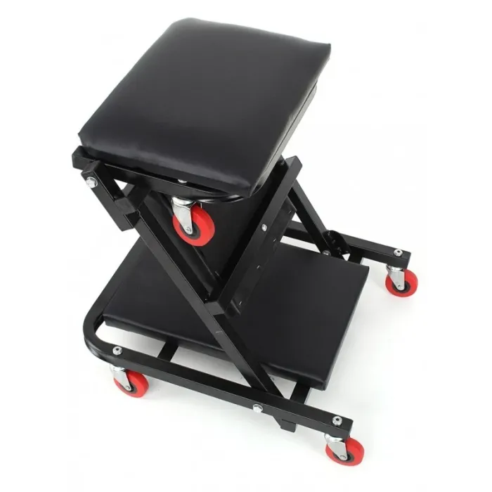 Иновативно 2 в 1 решение, идеално за автосервизи, сервизни центрове и частни потребители. Благодарение на Z-образното си сгъване, тя лесно се трансформира от обикновена лежанка в удобна седалка за работилница.