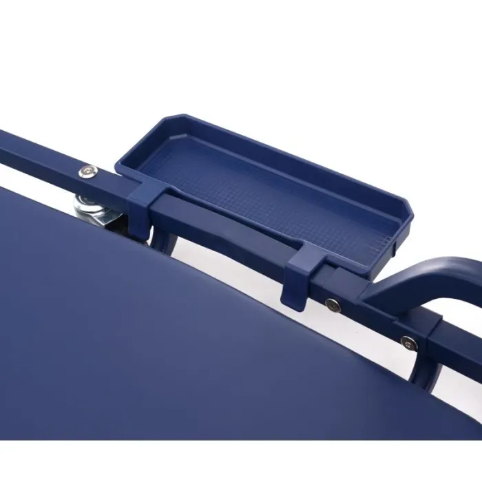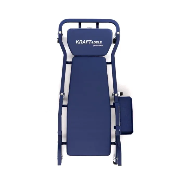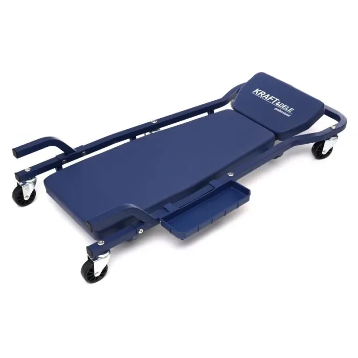 Оборудван с 6 колела, които улесняват маневрирането. Удобна и мека облегалка за глава. Здрава и лека конструкция. Специални вдлъбнатини за инструменти. Изработен е от висококачествена пластмаса. Проектиран както за професионални автомобилни сервизи, така и за домашни гаражи, ергономичната му форма подобрява комфорта при работа.