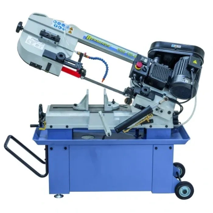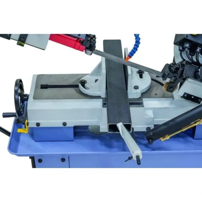 Тази лентоотрезна машина е идеална за рязане на профили, тръби, плътни материали от метал и други. Оборудвана е с бързозатягащо менгеме, което позволява скосяване при рязане до 45°. Воденето на лентата е с двойни лагери, осигуряващи оптимално движение и стабилност.