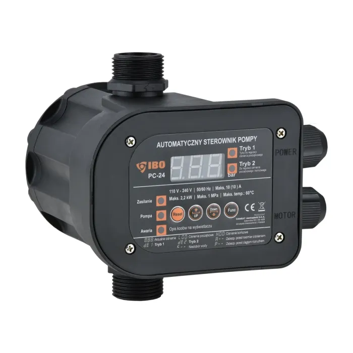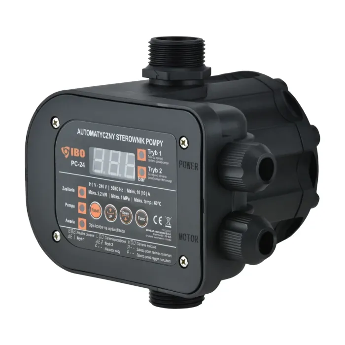 Контролер PC-24 е предназначен за управление на помпата чрез включване и изключване на устройството. Включването зависи от намаляване на налягането на водата във водопроводната система под минималното налягане, зададено на машината, и от дебита в тръбата, на която е монтирана машината PC-24. Деактивирането зависи от задържането на водния поток в тръбата.