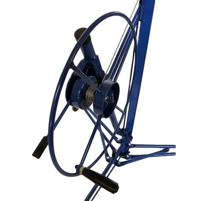Подемникът е оборудван със защита срещу случайно сгъване и три колела със спирачки за лесно транспортиране по време на работа и съхранение. Повдигача е много лесен за сглобяване и разглобяване, с опростена, подсилена конструкция. Професионален повдигач за гипсокартон и ПДЧ, позволяващ на един човек да повдига плоскости с размери 1,22 м x 4,88 м. Повдигачът на плочи е проектиран да работи под различни ъгли и може да се регулира според нуждите.
