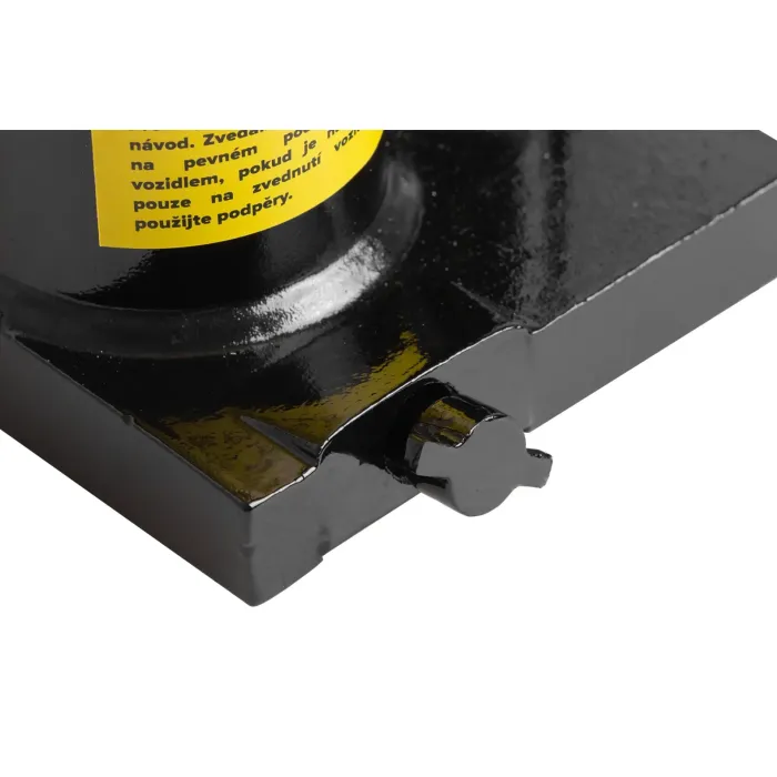 Благодарение на чугунената основа, която равномерно разпределя теглото на превозното средство, крикът не само осигурява стабилност, но и безопасно повдигане. Защитният клапан от претоварване гарантира, че крикът работи в безопасни условия, предпазва вашия инструмент и най-вече гарантира лична безопасност при работа с тежки товари.