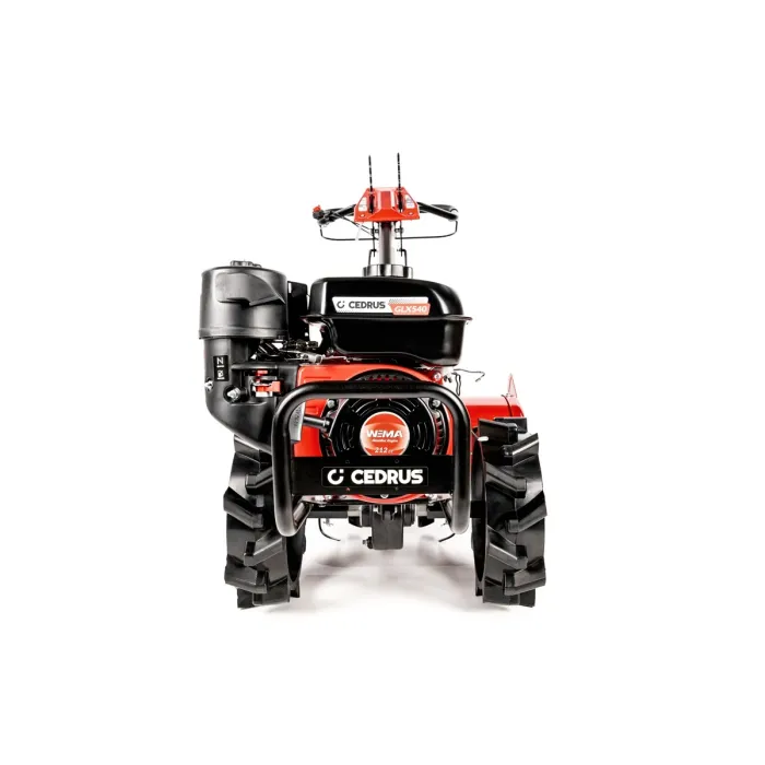 Задвижването на колелата осигурява отлично омекотяване на силите, предавани от работните ножове, намалява усилието при работа и позволява цялостно разрохкване на почвата още при първото работно преминаване. Колелата също така улесняват придвижването на машината до работната площадка, което, когато се извършва с този фреза, е леко и ефективно. Моделът CEDRUS GLX 540 е оборудван с мощен и надежден двигател WEIMA, задна предавка или регулируема работна дълбочина, което прави почвения фреза много мощно устройство. Подготовката или обработката на почвата става лесна, бърза и приятна с негова помощ. CEDRUS GLX540 - е професионален почвен фреза - с функция за промяна на посоката на въртене на ножовете по време на работа. Могофункционална и универсална фреза с независимо задвижване на колелата. Най-важното предимство - възможността за задвижване на ножовете в две посоки. Проектирана за употреба в градини, пластмасови тунели, оранжерии и ферми за редови култури.