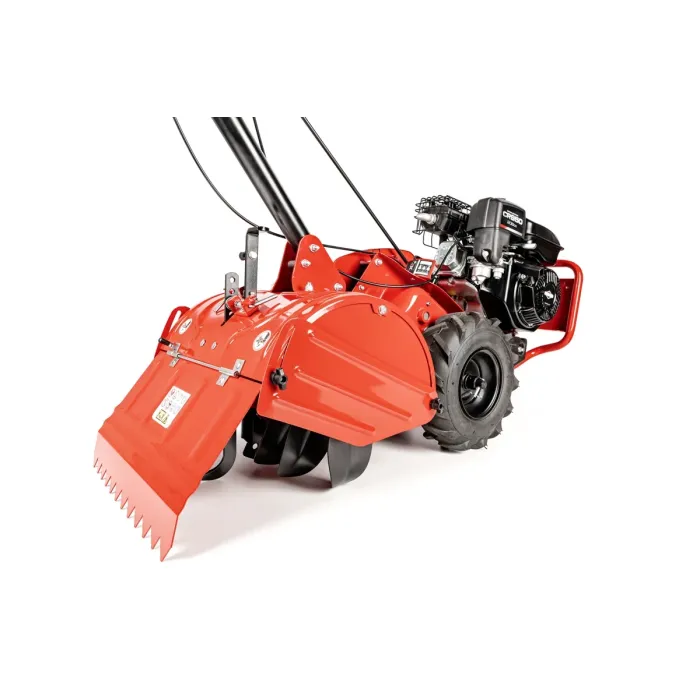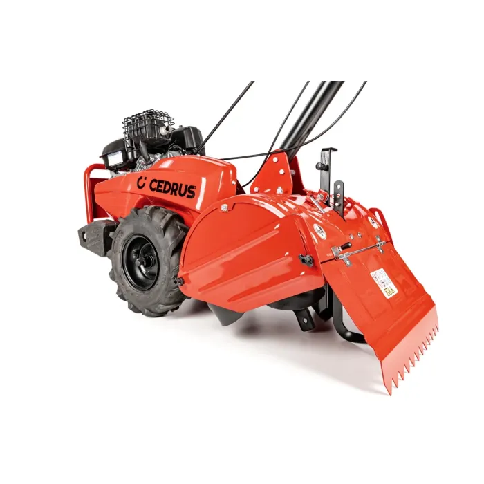 Задвижването на колелата осигурява отлични сили на омекотяване, предавани от работните ножове, намалява усилието при работа и позволява цялостно разрохкване на почвата още при първото работно преминаване. Колелата също така улесняват придвижването на машината до работната площадка, което, когато се извършва с тази фреза, е леко и ефективно. Оборудването на модела GL03PRO-B&S с мощен и надежден двигател Briggs & Stratton CR950, задна предавка или регулируема работна дълбочина, прави почвената фреза много мощно устройство. Подготовката или обработката на почвата става лесна, бърза и приятна с негова помощ. CEDRUS GL03PRO-B&S Briggs & Stratton - е професионална почвена фреза - с функция за промяна на посоката на въртене на ножовете по време на работа. Многофункционална и универсална фреза с независимо задвижване на колелата. Проектирана за употреба в градини, оранжерии и ферми за редови култури.