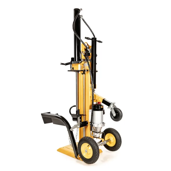 Електрическата машина за цепене на дърва LS10V може да цепи дърва с дължина от 56 см до 110 см. Допълнително предимство при работа с по-дебели трупи е механичното повдигане, което елиминира необходимостта от използване на сила за позициониране на дървата под клина на цепилка. Мощен трифазен двигател с мощност 5100 W осигурява плавна работа на цепачката. Скоростта на подаване на цилиндъра се регулира чрез натискане на лостовете за управление. Първата позиция осигурява бързо подаване от 6 м/мин, предназначено за дърва с по-малък диаметър, докато втората позиция е за работа с по-големи диаметри или дърва с възли, с работна скорост от 2,9 м/мин. Стандартните колела улесняват транспортирането. Електрическите цепачки са най-доброто решение за подготовка на дърва за огрев. Новата вертикална цепачка за дърва Cedrus LS10V е оборудвана с външен цилиндър със сила на притискане от 22 тона.