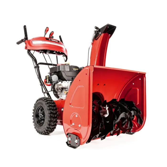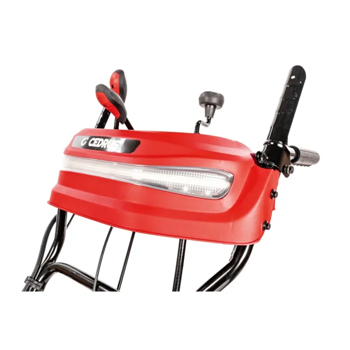 Снегорин с мощен 4-тактов OHV двигател с мощност 7 к.с. осигурява отлични работни резултати. Благодарение на голямата работна ширина: 61 см , удобното почистване на сняг дори от големи площи няма да отнема много време. Максималният обсег на снегорин за снегорин CEDRUS SB61-E+ е 11 м , а височината на снегорина е 51 см . За да адаптираме устройството към текущите работни условия, можем лесно да регулираме комина в диапазон от 190°.
