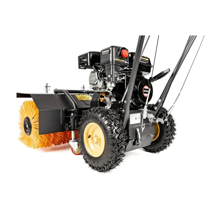 Голямо предимство на метачната машина е регулирането на ъгъла на метене надясно и наляво в диапазон до 15°, както и задвижващата система с 5 предавки напред и 2 предавки назад. Допълнителни аксесоари, които ще ви позволят да използвате дизеловата метачна машина Cedrus през цялата година, са кош и снегорин. Метачната машина се задвижва от мощен двигател Loncin G200F. Работната система е оборудвана с четка с ширина 80 см и диаметър 34,5 см.