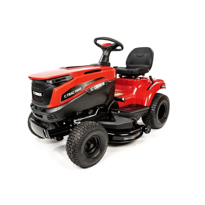 Тракторът CEDRUS C-TRAC 98HS представлява новото поколение косачки за трева Cedrus. Тракторът е оборудван с всички най-модерни решения за повишаване на комфорта, ефективността на косене и най-вече издръжливостта. Комфортът и производителността са идеалният отговор на нуждите на най-взискателните клиенти, които дори в малки пространства търсят лесна работа, висока производителност и дълъг живот на устройството. Градинските трактори Cedrus от линията C-TRAC със странично изхвърляне са идеални за косене на големи тревни площи. Благодарение на широкия страничен канал за изхвърляне, те са идеални за косене на малко по-висока трева в райони, където събирането на откос не е основната цел на оператора.