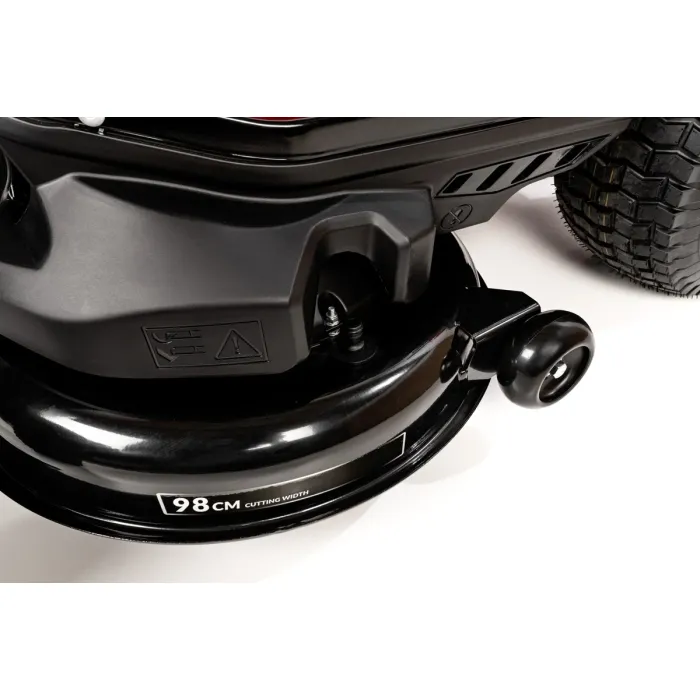 Това е устройство, оборудвано с всички необходими функции. В допълнение, представеният модел се характеризира с отлично съотношение цена-качество. Градински трактор с висококачествен 4-тактов двигател LONCIN с мощност 16 к.с. Ножове с работна ширина до 98 см със странично изхвърляне на трева . За прецизното косене отговаря чифт противоположно въртящи се стоманени ножове с регулируема височина на косене от 30 до 90 мм (7 позиции). Благодарение на мощната скоростна кутия, ускорението е плавно и комфортно, което ви дава отличен контрол върху скоростта. Машината, разбира се, разполага с електрически стартер, система за смилане и мулчиране и заден навес.
