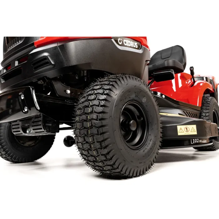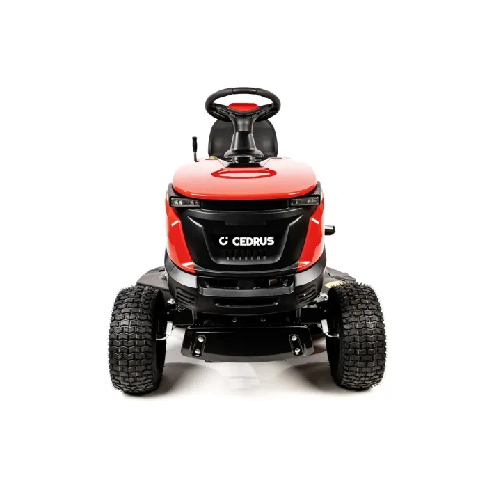 Градинският трактор CEDRUS C-TRAC 102HC със задно изхвърляне е отлично устройство за косене на трева в домашни градини, съседни градини и парцели. Това е устройство, оборудвано с всички необходими функции. В допълнение, представеният модел се характеризира с отлично съотношение цена-качество. Градински трактор с висококачествен 4-тактов двигател LONCIN с мощност 18 к.с. Ножове с работна ширина 102 см със задно изхвърляне на тревата . За прецизното косене отговаря чифт противоположно въртящи се стоманени ножове с регулируема височина на косене от 30 до 90 мм (7 позиции). Благодарение на използването на хидростатична трансмисия, ускорението е плавно и комфортно, което дава отличен контрол върху скоростта. Машината, разбира се, разполага с електрически стартер, система за мулчиране и заден теглич.