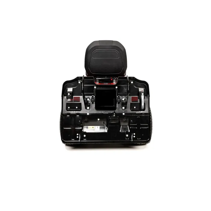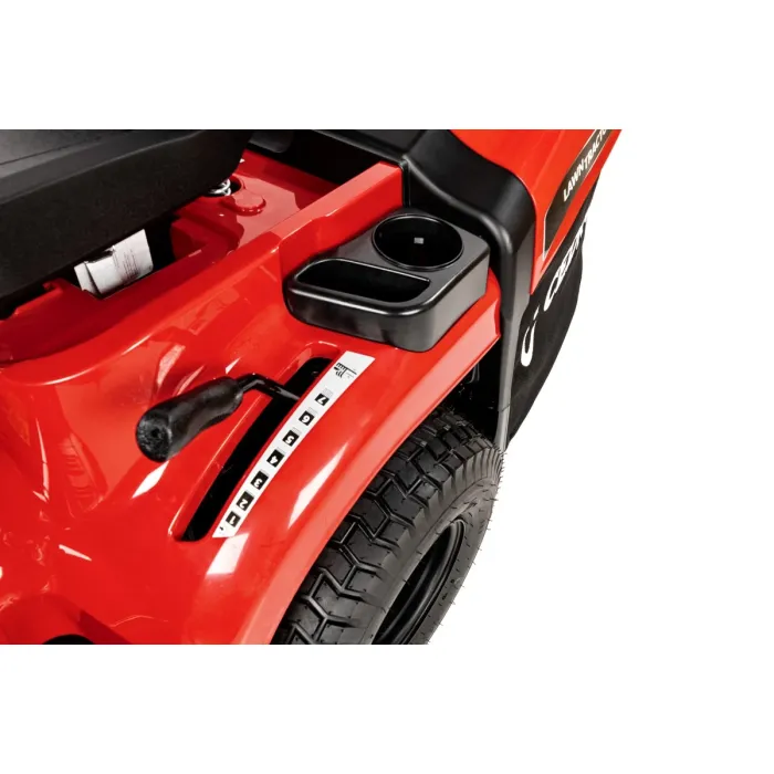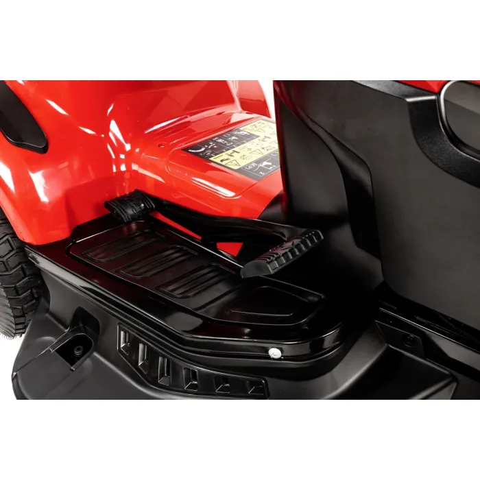 Хидростатичната трансмисия се стартира с педала, без да е необходимо да сваляте ръцете си от волана. Подсилени и екранирани лагери и опора на режещия нож, проектирани за издръжливост дори при много интензивна употреба. Системата за регулиране на височината на косене се управлява от пружина, която позволява повдигане и спускане без усилие с лост. Значително намаленият радиус на завиване улеснява движението около растения и декоративни храсти без ненужни и тромави маневри на задна предавка или необходимост от преместване на трактора.