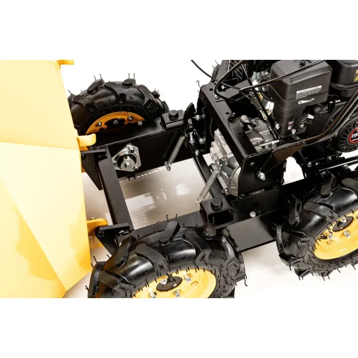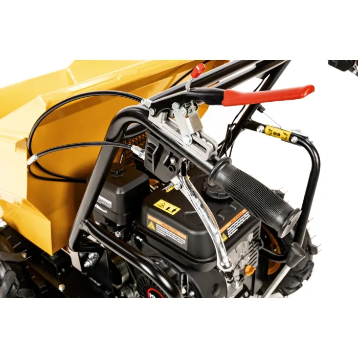 Механична трансмисия с три предни и задна предавки ви позволява да регулирате скоростта, за да отговаря на задачата и транспортирания материал. Идеалната машина за транспортиране на всякакви материали. Неговият 196-кубиков четиритактов двигател позволява ефективна работа при всякакви условия. Офроуд гумите с агресивен грайфер помагат за работа в труден строителен терен.