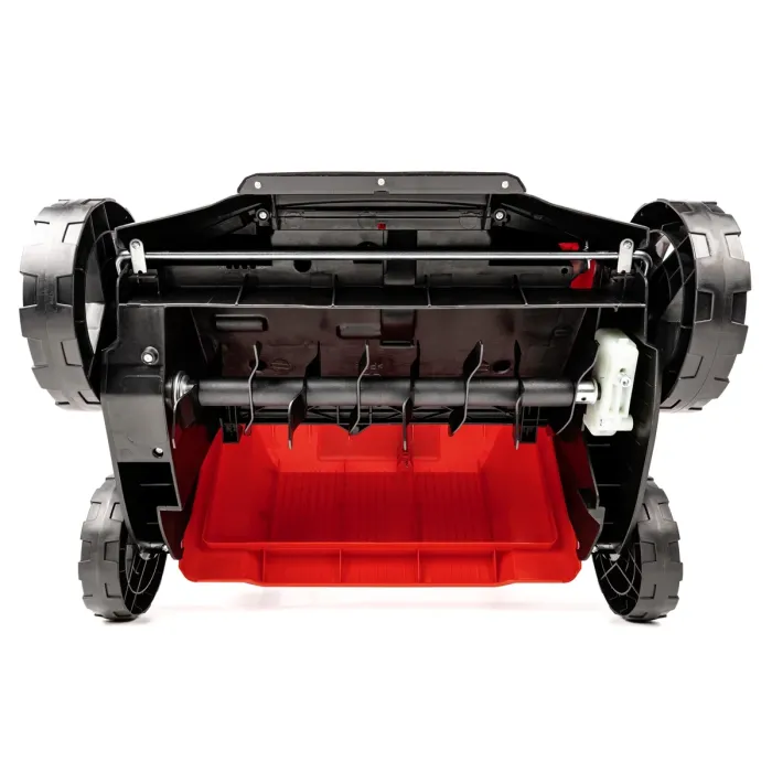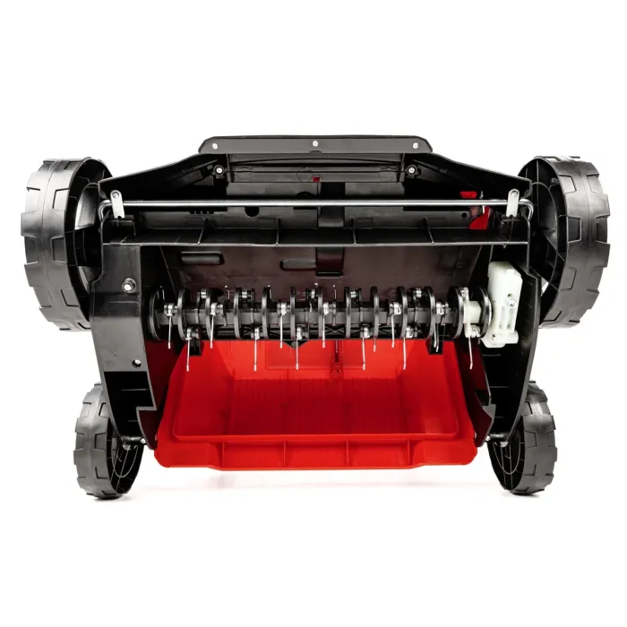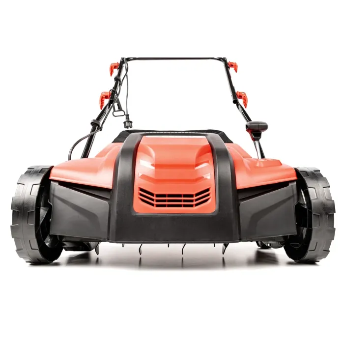 - Аератор с тел - гребе трева, събира листа и нежно аерира почвата. Мощният 1800W мотор с оптимален въртящ момент лесно се справя с всякакъв тип тревна площ. Устройството разполага с 6-степенно регулиране на работната дълбочина, вариращо от +6 до -12 мм . Скарификаторът разполага с централно регулиране на височината, което ви позволява да настроите работното ниво с голяма прецизност, адаптирайки го към вашата специфична морава.