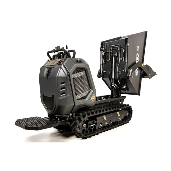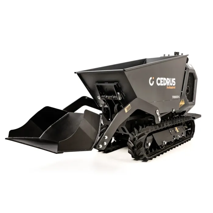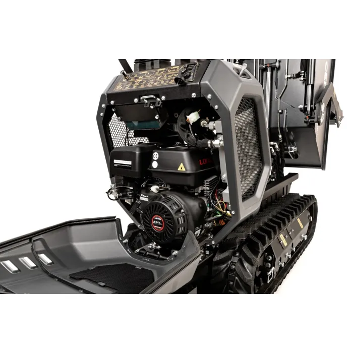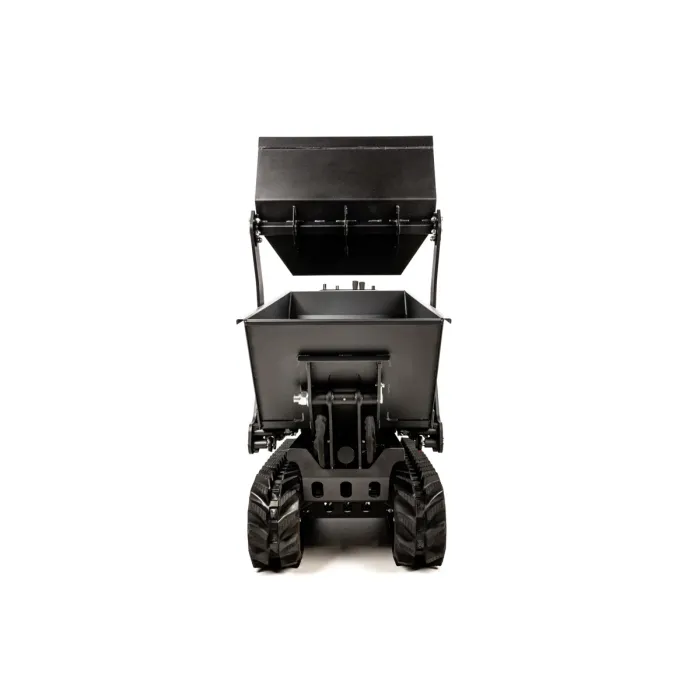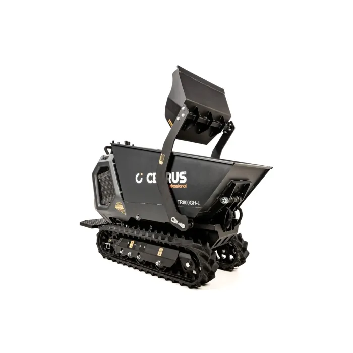 Оборудван с верижно задвижване, той предлага отлично сцепление и стабилност дори върху неравни повърхности. Благодарение на функцията за хидравлично обръщане, товаренето и разтоварването е особено лесно. Този модел е идеален за употреба на строителни площадки, в гората или във ферми, където трябва да се транспортират тежки товари. Обемът на контейнера е 0,3 м³, което позволява ефективно боравене. Електрическият стартер осигурява лесно стартиране и плавна работа. Максималната скорост от 4,4 км/ч и многофункционалните характеристики правят този транспортьор мощен и гъвкав помощник. Бензиновият мини дъмпер е здрава машина, проектирана за тежка работа и е идеална за транспортиране на материали по труден терен. С мощност 9,0 kW и максимална товароносимост от 800 кг, той може да се справи дори с тежки товари.