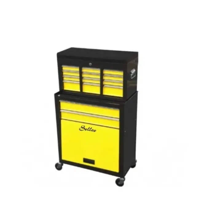 Описание: Количка за инструменти за подреждане и съхранение на инструменти. Състои се от две части: горна част с 6 чекмеджета и органайзер, заключва се; има удобни дръжки за лесно преместване и долна част състояща се от един голям шкаф и две по-малки чекмеджета. Снабдена е с 4 колела, за по-лесно преместване.