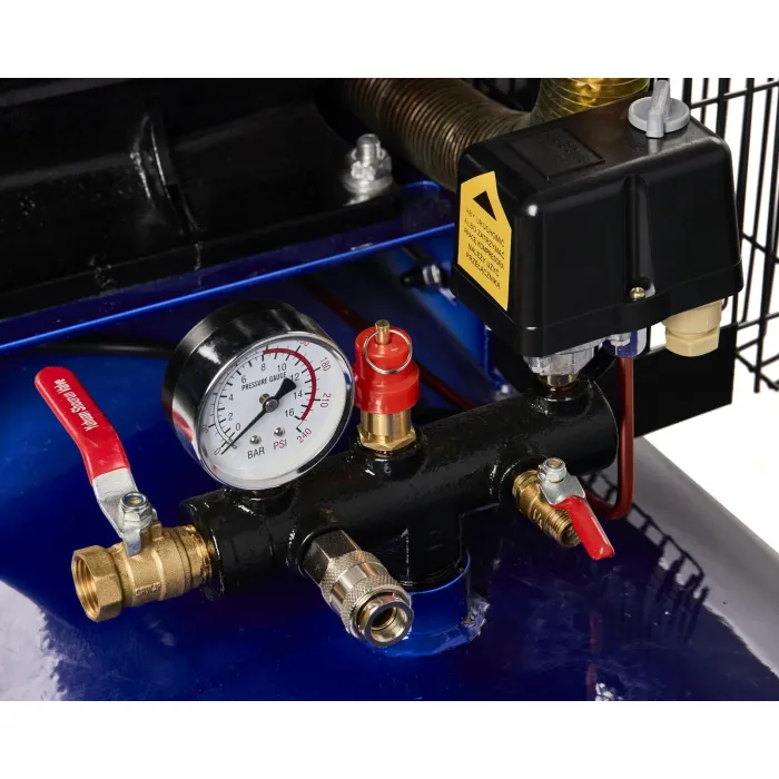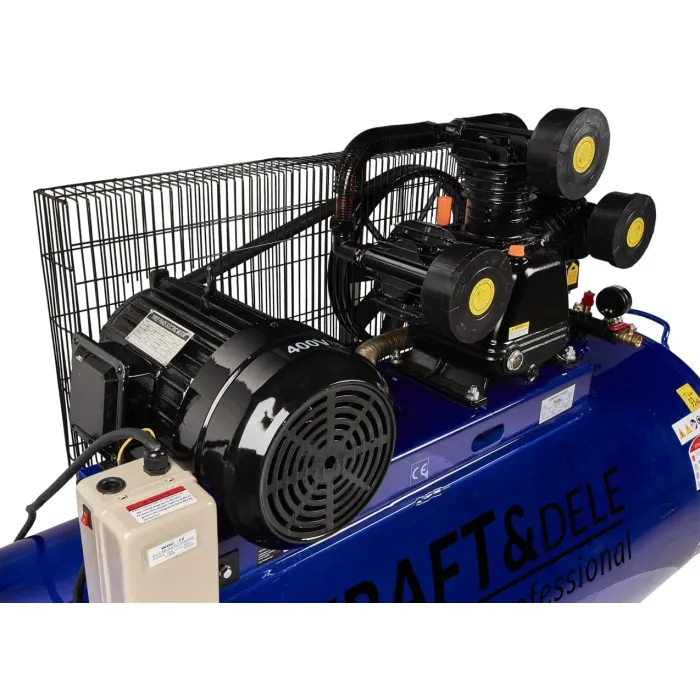 Компресорът е с 3 бутала, подходящ за продължителна и интензивна работа. Сепаратор - компресорът е оборудван с маслоотделител с редуктор на налягането, който задържа вода и масло в отработения въздух. Ергономичен - има редуктор на налягане, оборудван с иновативен механизъм за регулиране и лесен за използване кран за източване. Икономичен - разсейва топлината много добре благодарение на широките ребра и се характеризира с ниска консумация на енергия, като същевременно поддържа високи експлоатационни параметри. Мобилен - благодарение на здравите си колела, може лесно да се транспортира до правилното място. Висока ефективност на въздушния поток. Високоефективният маслен компресор е незаменимо и най-важното - надеждно устройство в дома, гаража, работилницата или фирмата. Идеален е за повечето пневматични съоръжения, например изпомпване, почистване, обдухване, боядисване на повърхности и др.