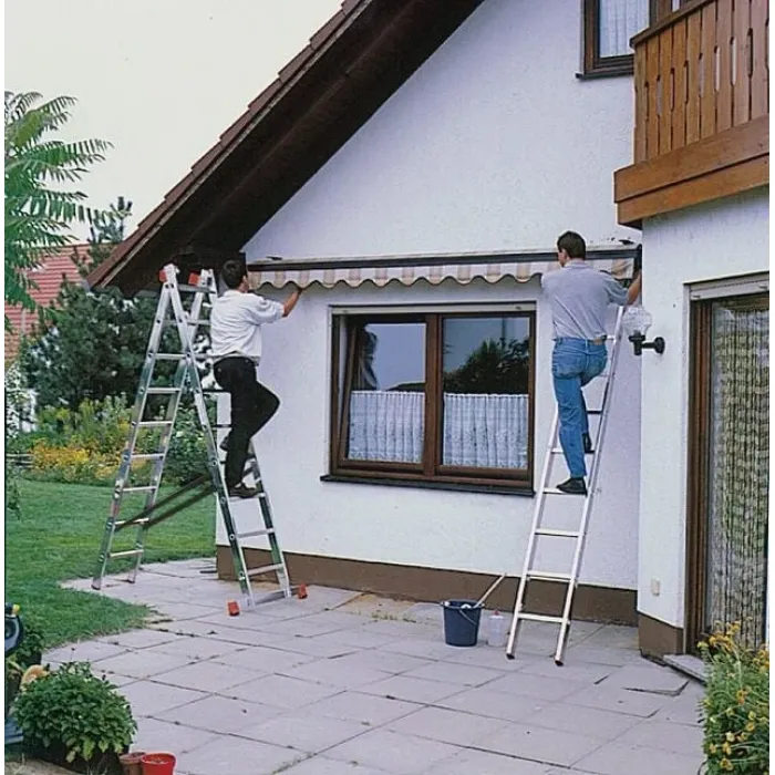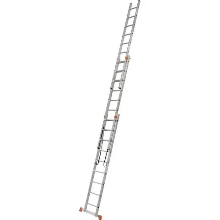 Професионална трисекционна алуминиева многофункционална стълба. Самозаключващи се лостове (AutoSnap-System) за безопасно транспортиране. Устойчиви на атмосферни влияния и устойчиви на разкъсване ремъци. Широка стабилизираща основа за още по-голяма стабилност. От размер 3x12 стъпала и над подвижната част на стълбата може да се използва само с Trigon-Stabiliser. Устойчиви на плъзгане капачки и тапи за крака (SafetyCap). Стълбата може да се използва като еднораменна наклонена стълба от една или три секции, двураменна стълба, двураменна стълба с удължение или двураменна стълба със стълбищна функция. Прахово боядисани стоманени водещи профили за по-лесно използване.