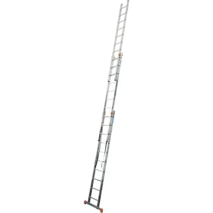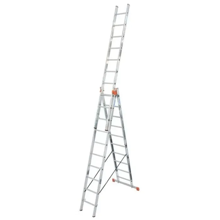 Професионална трисекционна алуминиева многофункционална стълба. Самозаключващи се лостове (AutoSnap-System) за безопасно транспортиране. Устойчиви на атмосферни влияния и устойчиви на разкъсване ремъци. Широка стабилизираща основа за още по-голяма стабилност. От размер 3x12 стъпала и над подвижната част на стълбата може да се използва само с Trigon-Stabiliser. Устойчиви на плъзгане капачки и тапи за крака (SafetyCap). Стълбата може да се използва като еднораменна наклонена стълба от една или три секции, двураменна стълба, двураменна стълба с удължение или двураменна стълба със стълбищна функция. Прахово боядисани стоманени водещи профили за по-лесно използване.