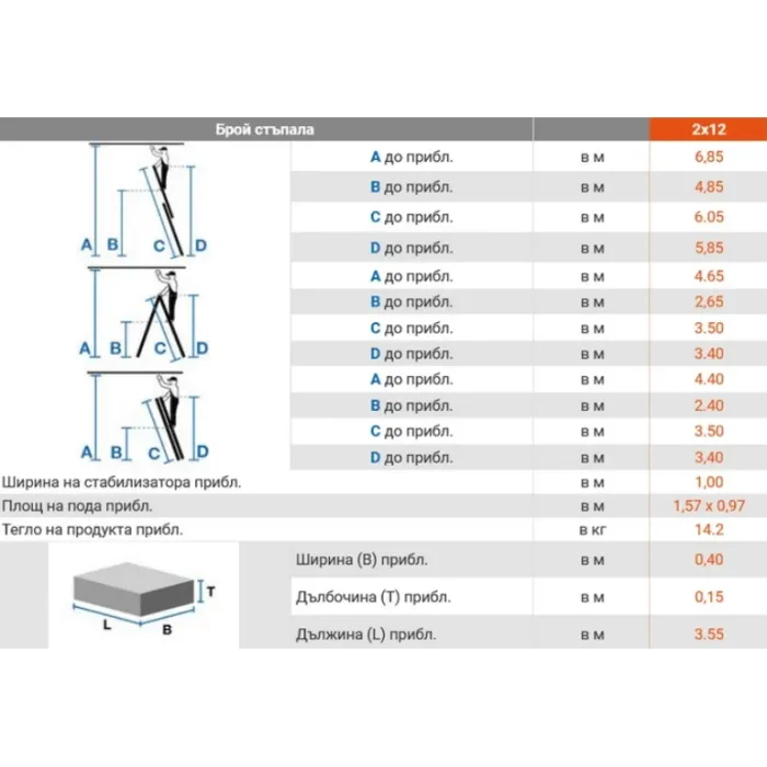 Дължина на стълбата, сгъната (C): 3.55 м