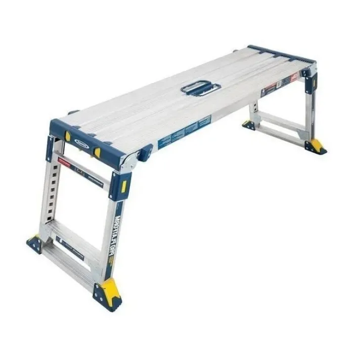Регулируемата платформа има елегантен алуминиев дизайн, който е здрав, компактен и лек за безпроблемно транспортиране за професионалния работник или ентусиаста „направи си сам“ в движение. Работната платформа с регулируема височина PRO е перфектна за работа върху неравни повърхности и по стълбища. Всички тези недостижими височини вече не са проблем с тази платформа.