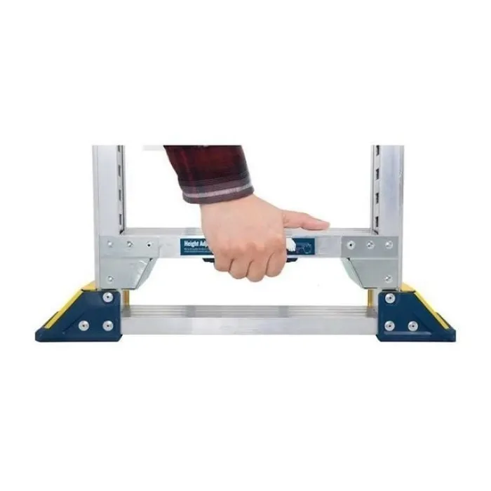 Тази универсална работна платформа се предлага с регулируеми крака, които могат да се регулират на 25 см височина от всяка страна. Платформата за скачане може да бъде конфигурирана на десет различни височини, чрез регулиране на самозаключващите се крака на предпочитаната от вас височина.
