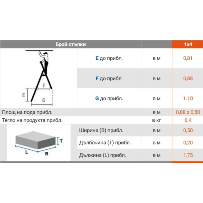 Брой стъпала: 1х4